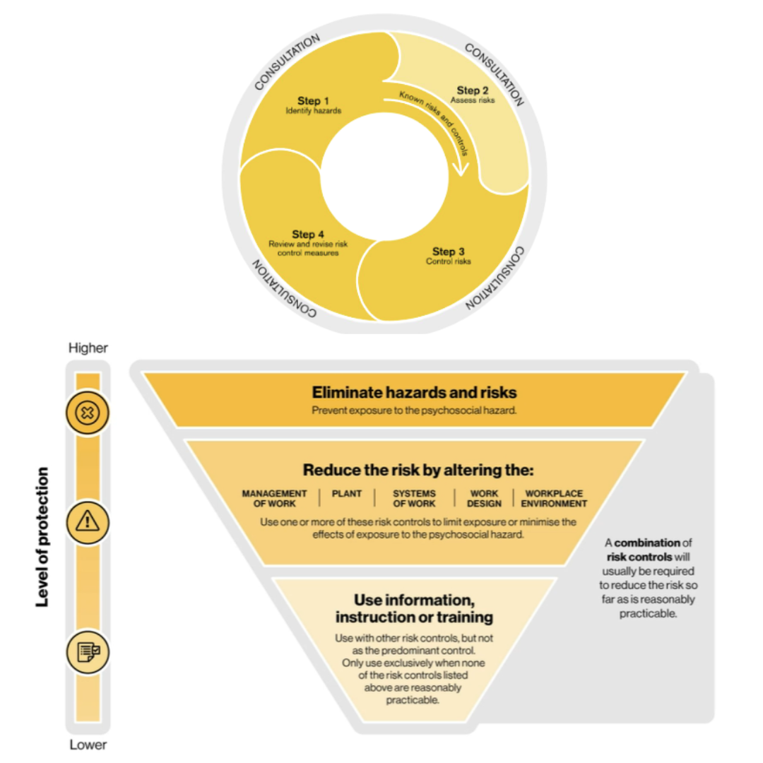 WorkSafe explained that they was now a prescribed risk management process which requires all employers to identify psychosocial hazards and to control the risks by eliminating or reducing the risks as far as reasonably practicable.